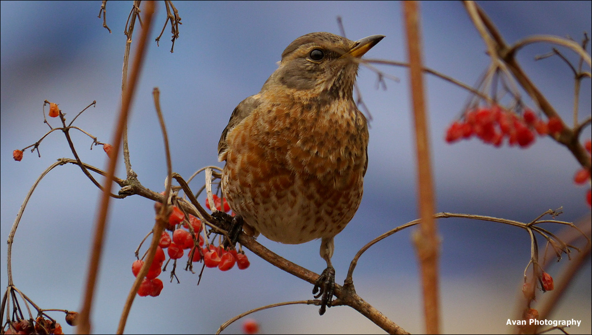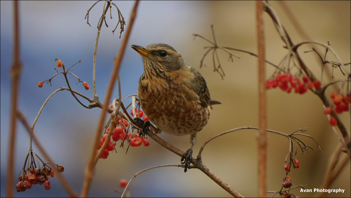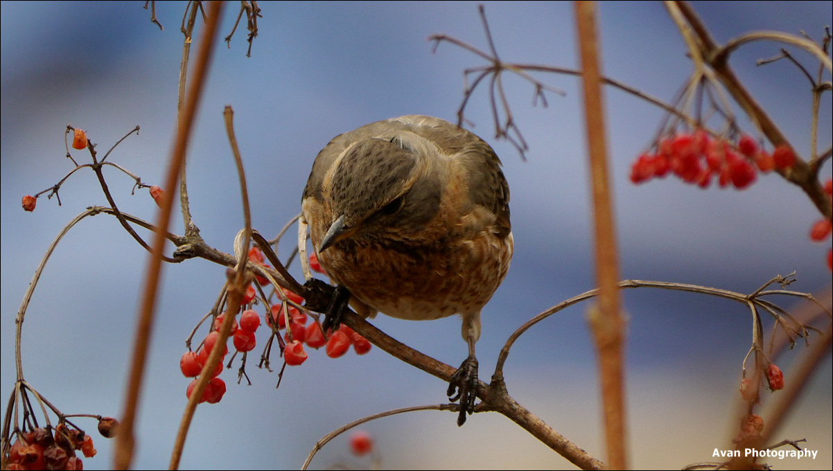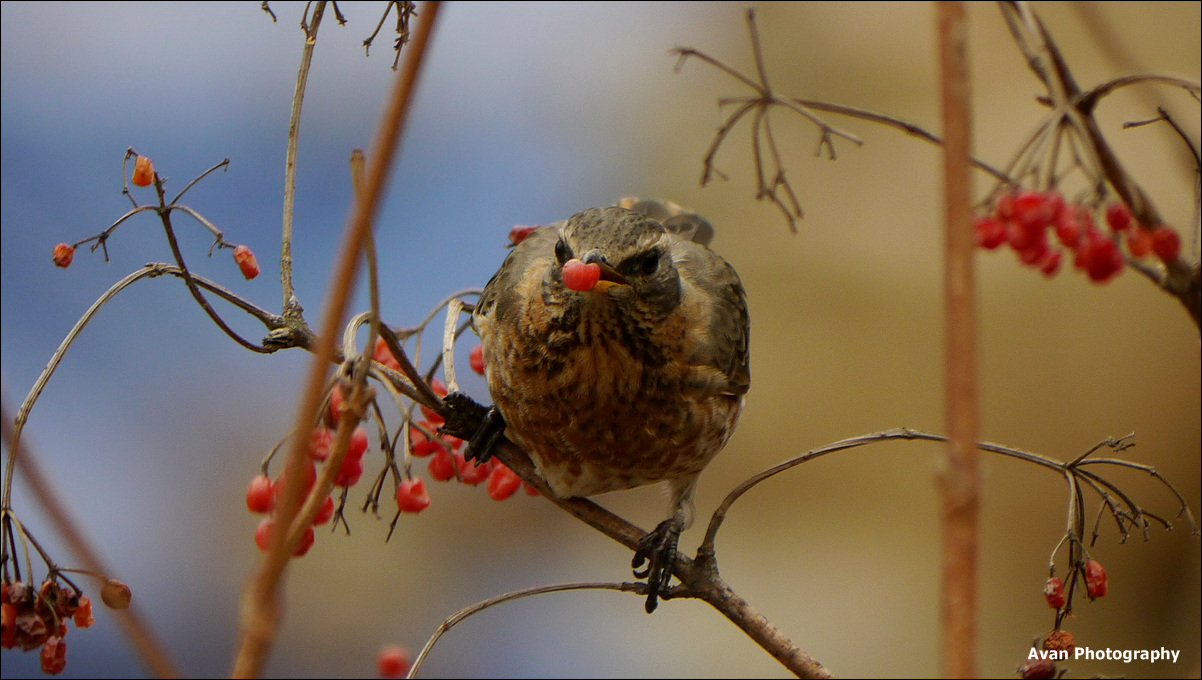 빨간 열매와 잘 어울립니다.