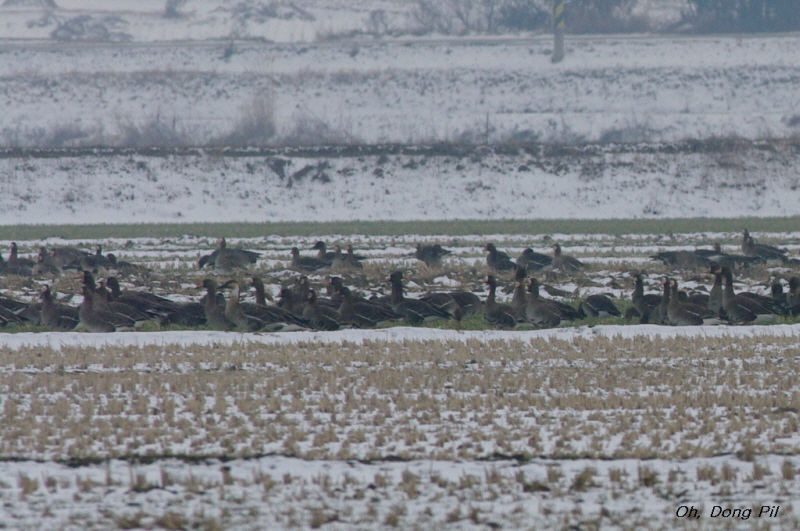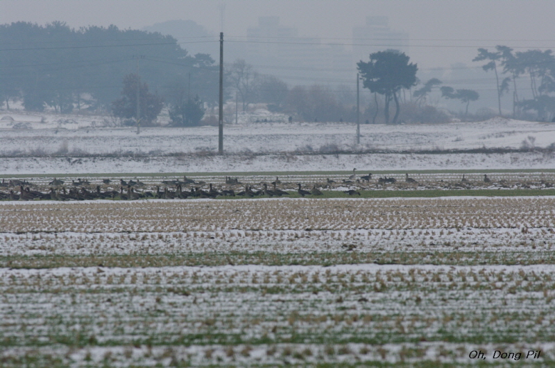 기러기무리속에 1개체가 있었습니다.