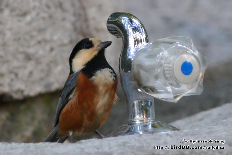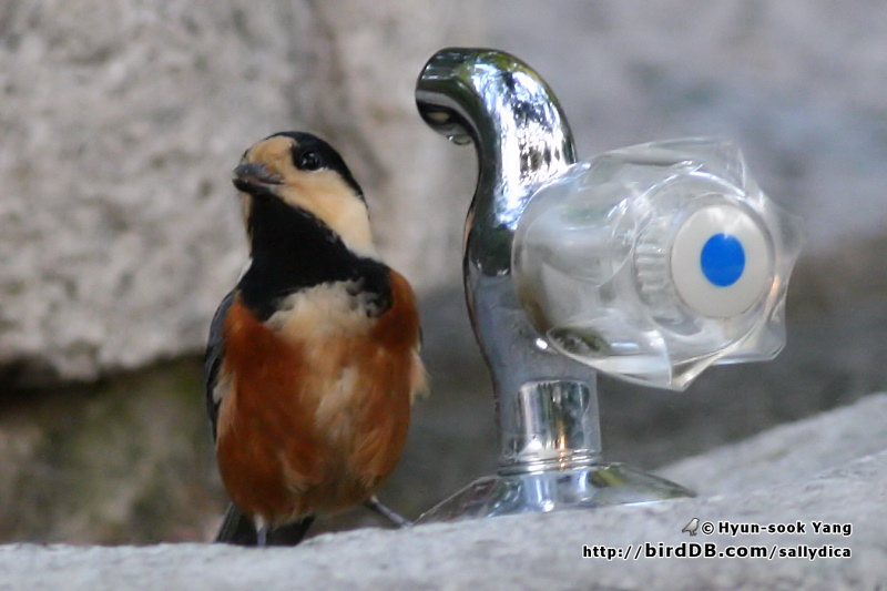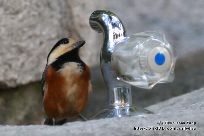 수돗가에서 물을 찾는 새의 모습이 약간은 측은해 보이네요..