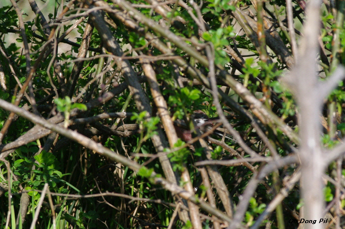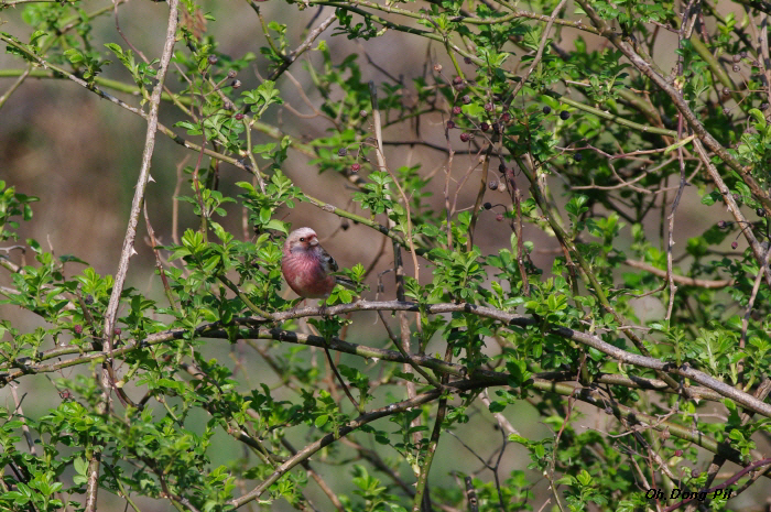 싱그러운 초록의 찔레새싹 사이에 있으니 분홍빛이 더욱 아름다운 새입니다.
