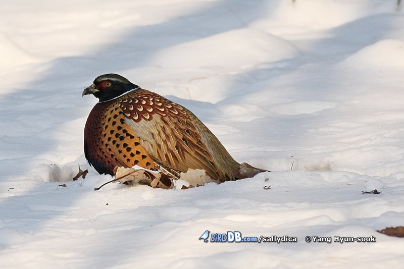수북하게 쌓인눈을 헤쳐가며 먹이 찾는라 꿩들도 고생이 많네요. 암컷 2개체, 수컷 2개체가 보입니다.