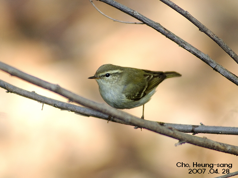 위의 새는 노랑눈썹솔새입니다. 버들솔새의 경우는 날개깃과 몸의 색이 비슷하답니다. 또한 등분에 보이는 날개덮깃에 위와같은 무늬가 나타나지 않습니다. 버들솔새에 대한 정보가 많지않은 종이랍니다^^: