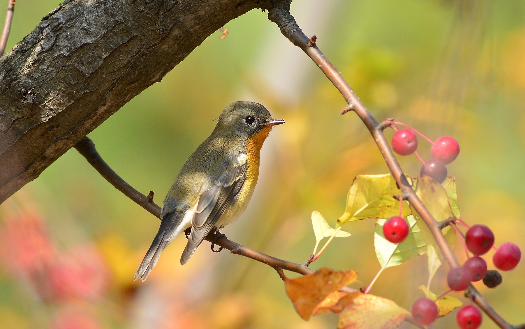 노랑딱새*Ficedula*mugimaki*Mugimaki*Flycatcher