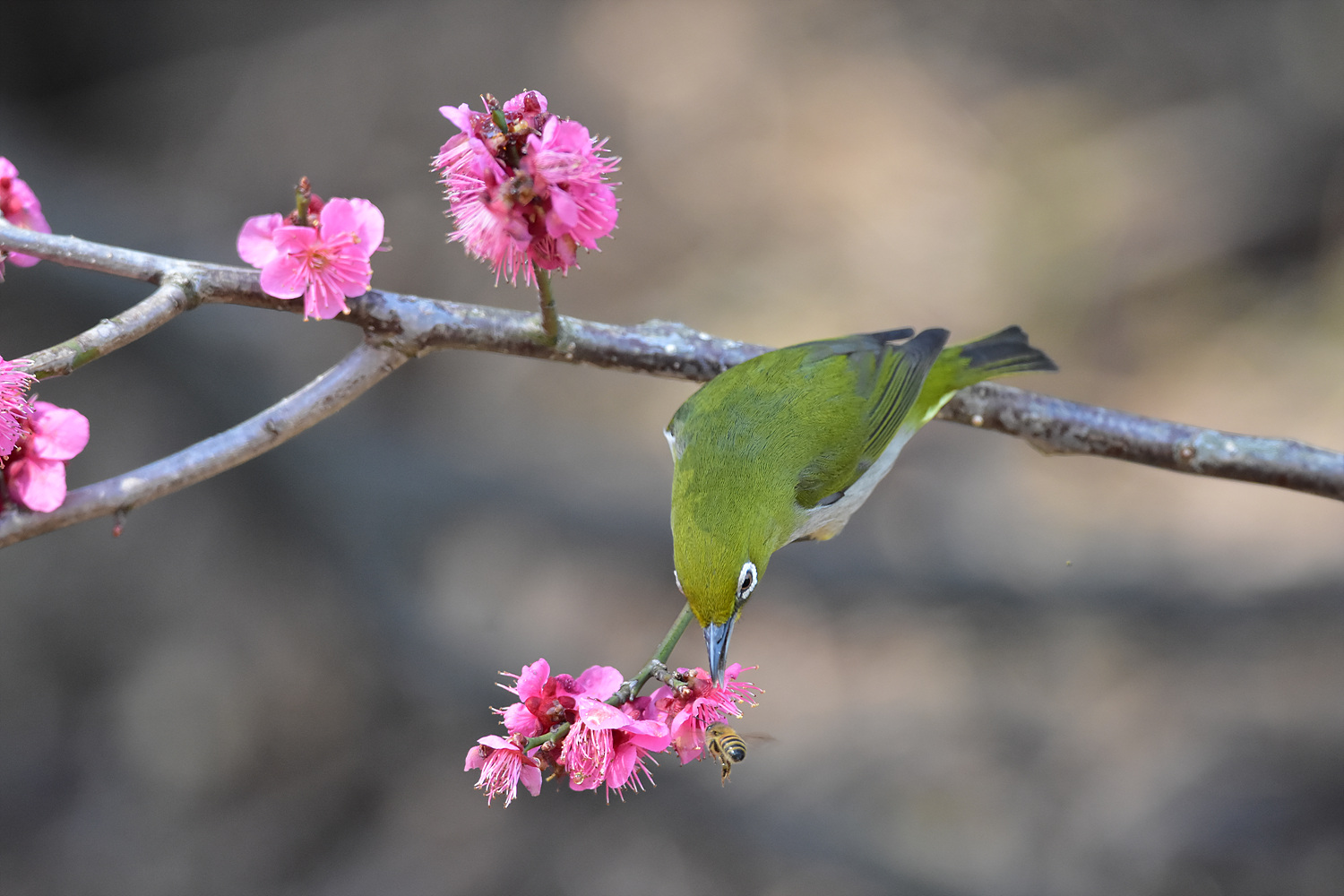 꽃과 벌 과 동박새.. 참 멋지네요.