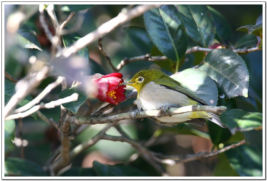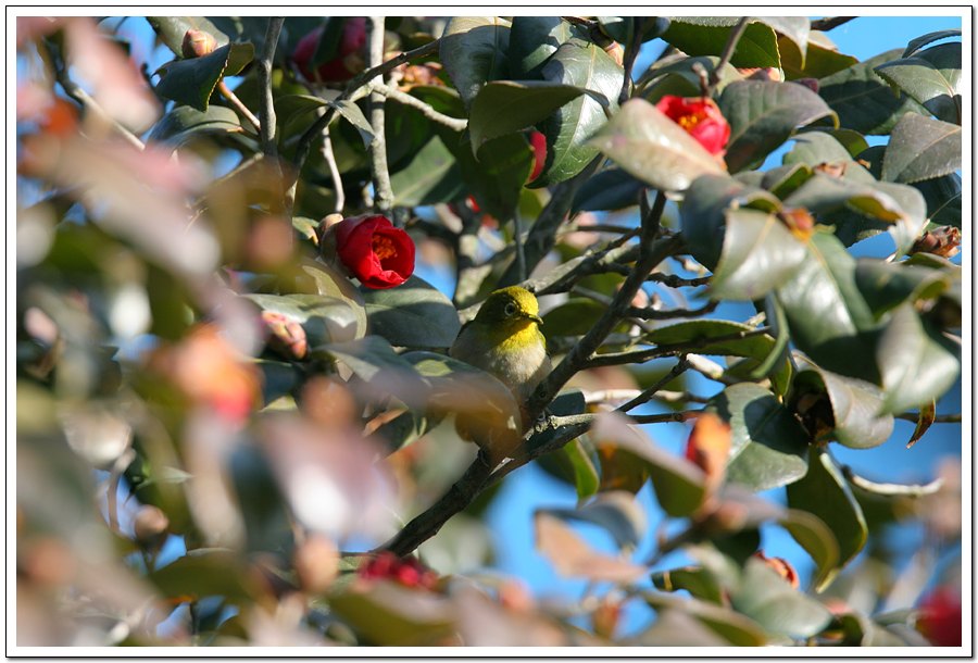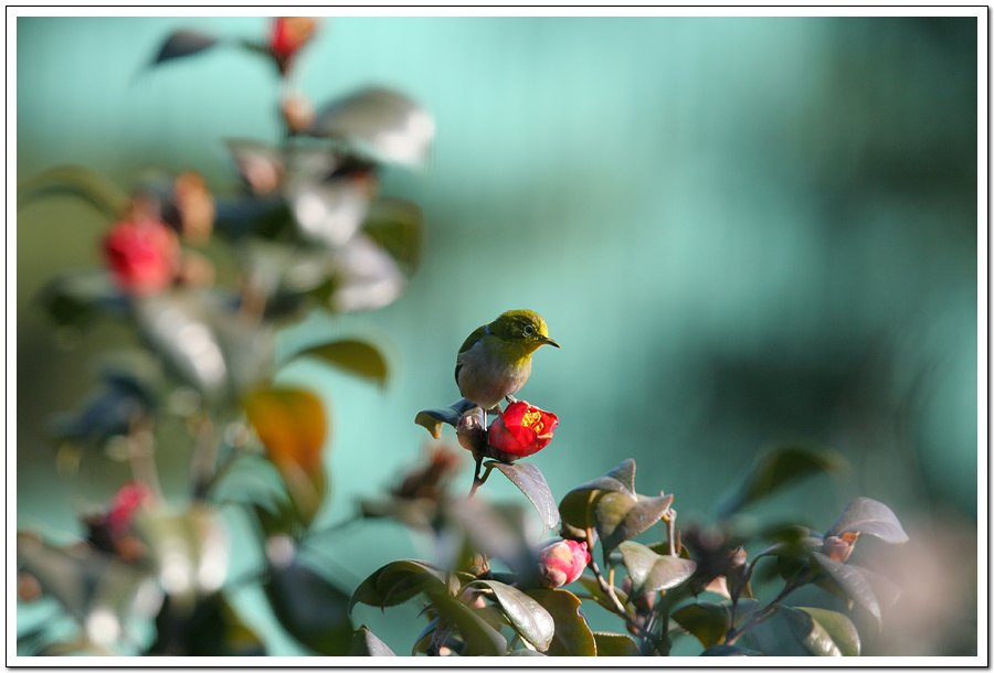 너무 멋진 모습입니다 빨간 동백꽃과 동박새 너무 잘 어울림니다