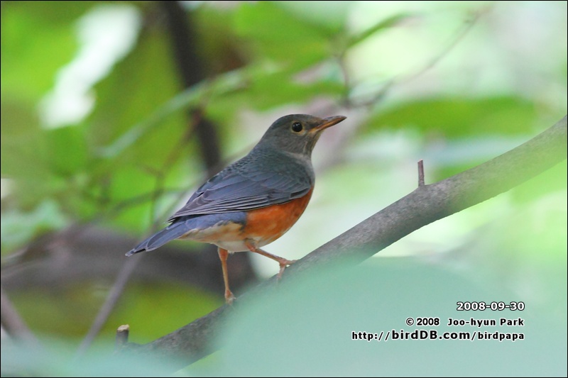어두운 나무잎 그늘속을 들여다보니.... 입장곤란한 표정(?)으로... 되지빠귀 한분이 숨어 있군요.