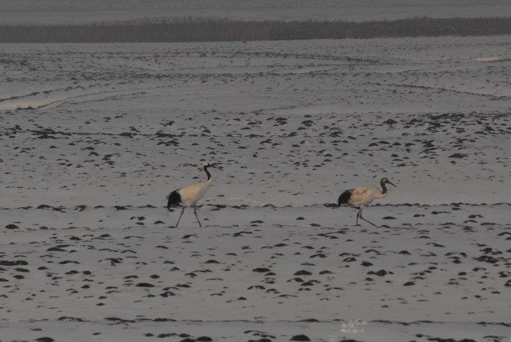 역시 눈덮힌 갯벌에 두루미는 그 자태가 더욱 멋습럽습니다.