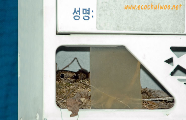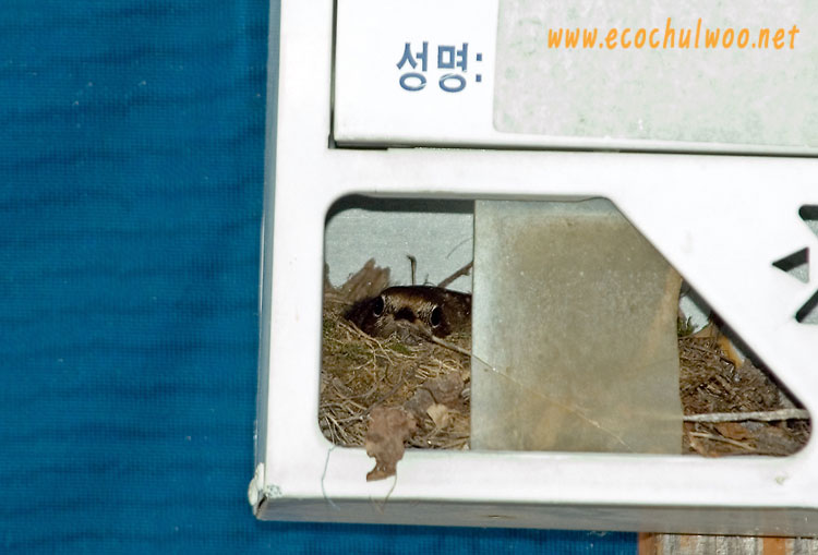 우체통에 둥지를 틀고 포란중인 딱새 암컷의 모습입니다.