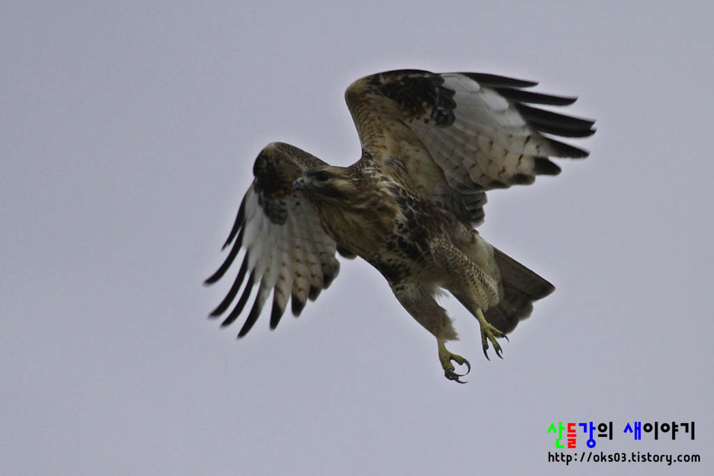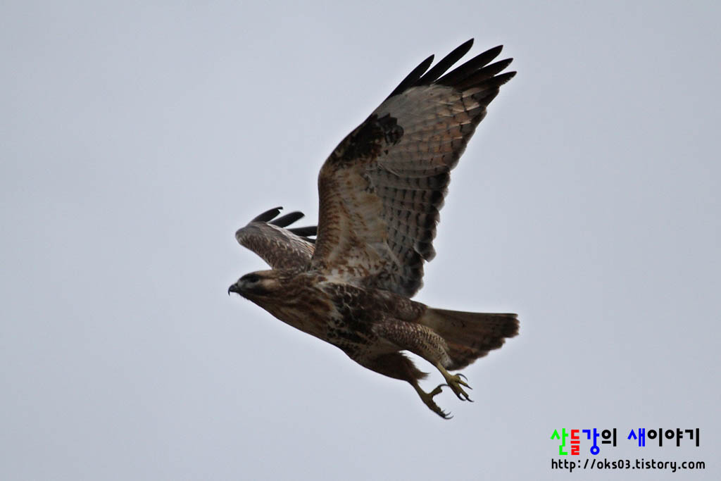 약간 어두운 시간이라 깨끗하게 보이진 않지만 말똥가리가 대단해 보입니다.