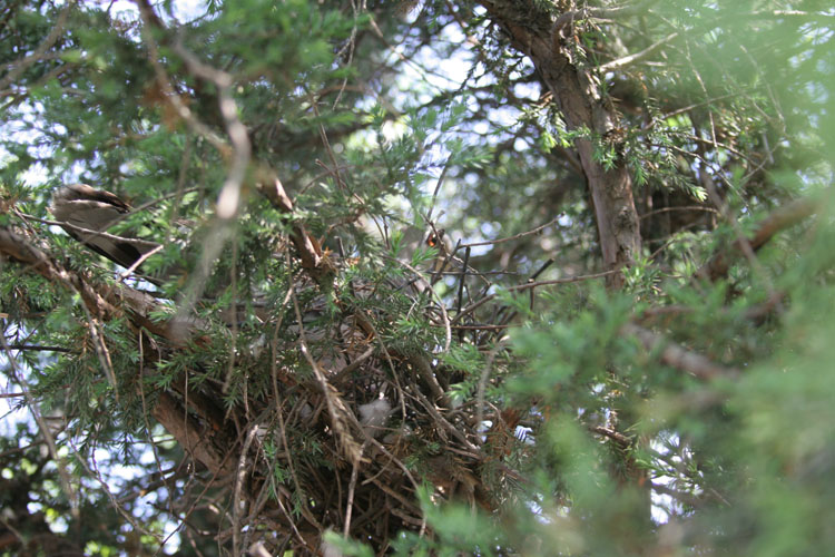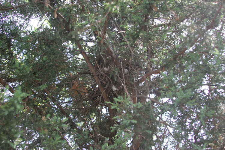 *엉성한 둥지. 둥지는 작은 나뭇가지로 짓고 당장이라도 무너질 것같이 초라하다. 철사도 사용한다.