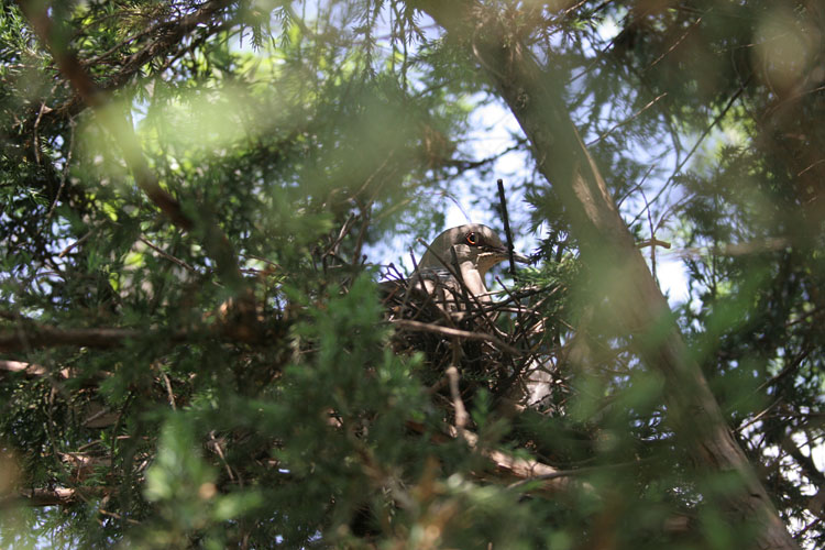 양주의 행복한새야님의 할머니 댁에서는 화단의 측백나무에 멧비둘기가 포란을 하고 있었다. 포란을 할 때는 인가 근처에 포란하는 점이 놀랍다.