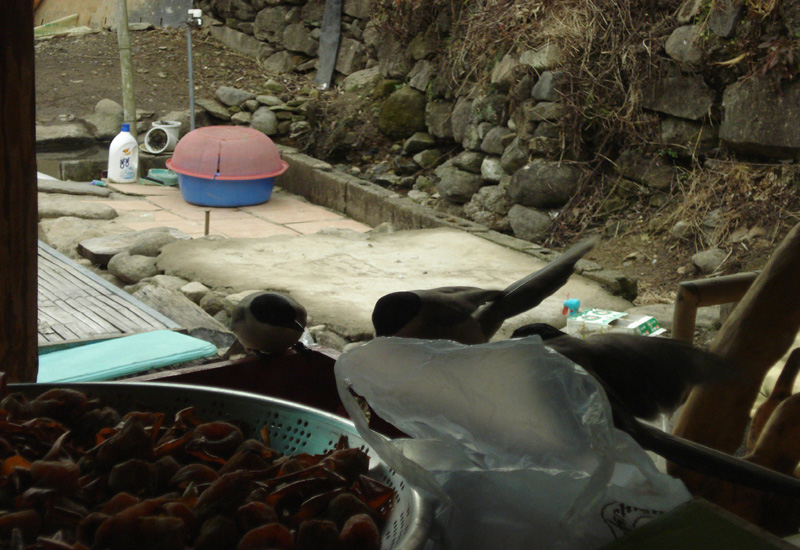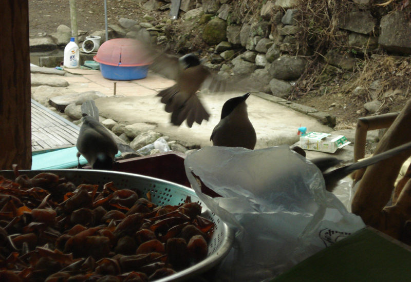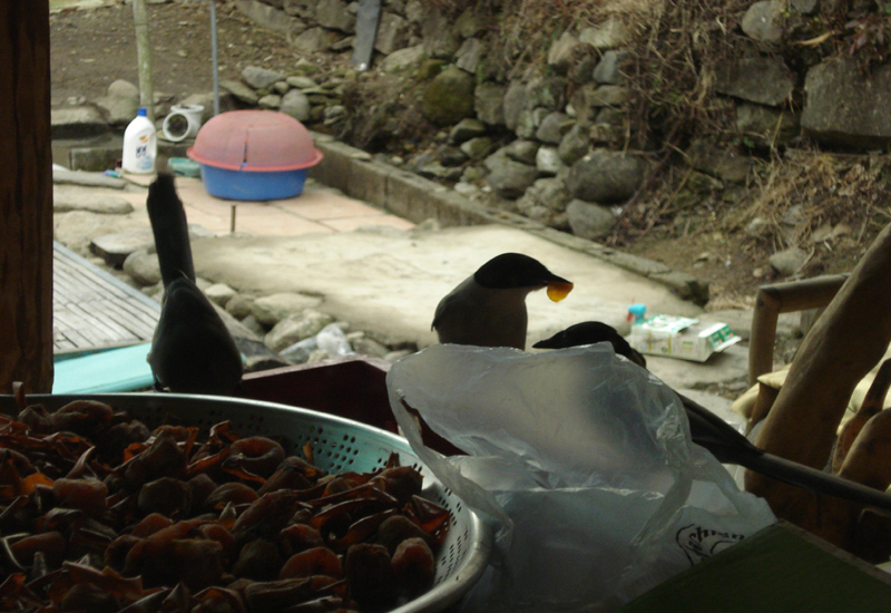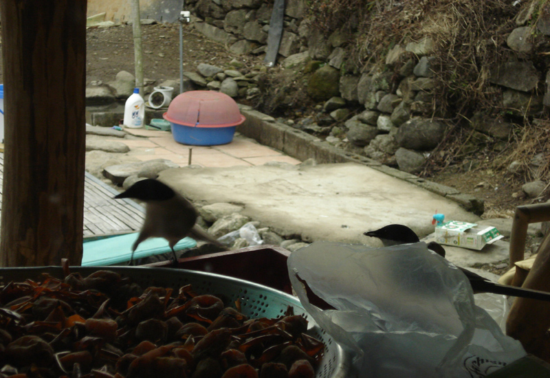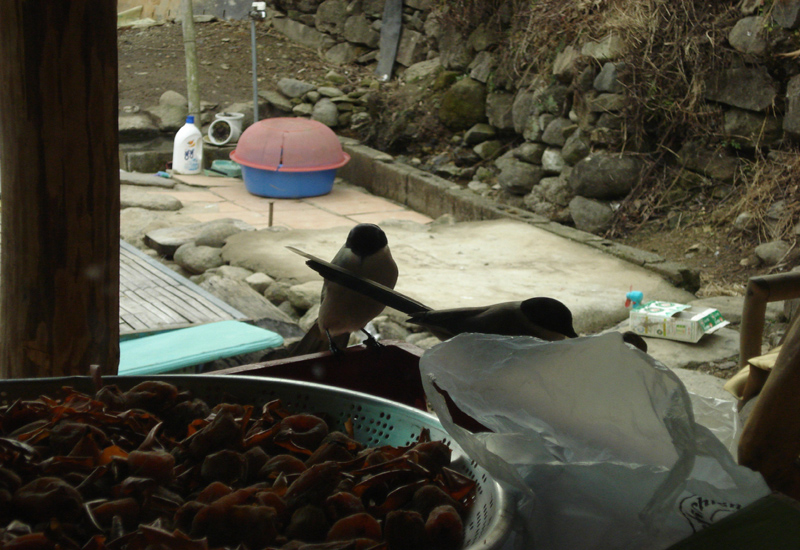 물까치들이 곶감을 먹으러 왔었어요
