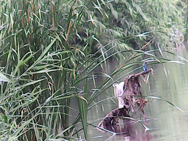 잘 안보이시겠지만 물에 잠긴 나무둥치 위 파란색 새가 물총새입니다.