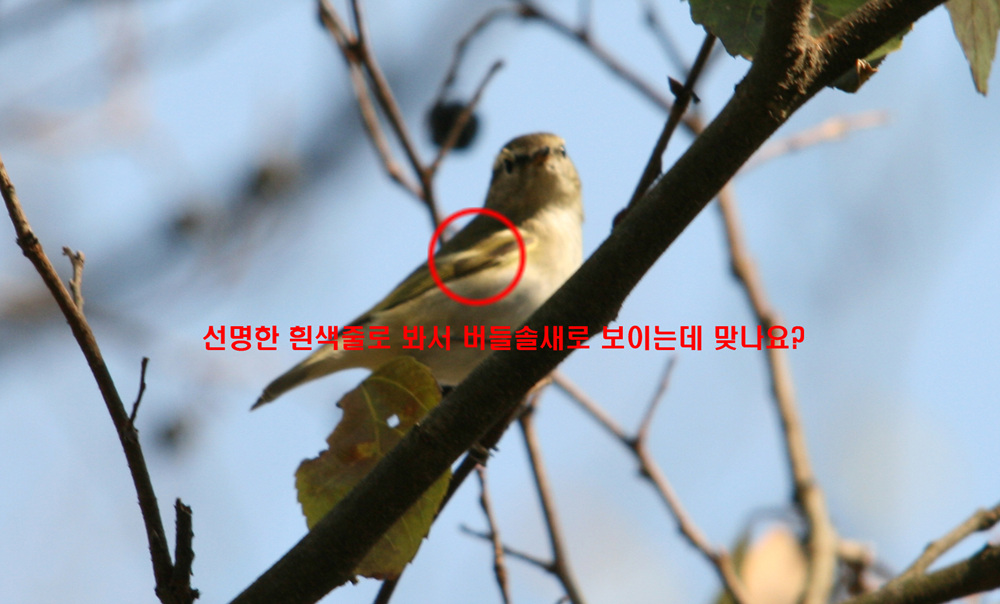 김대환님 말씀대로 윙바의 두줄 흰색은 동정키로 부적절하다고 알고 있습니다. 버들,노랑눈썹, 노랑허리 모두 현장에서는 비슷한 선명도를 가지고 있는듯 합니다. 어깨의 검은 반점에 주목해 볼수 있는데 그이상 잘 모르겠네요.