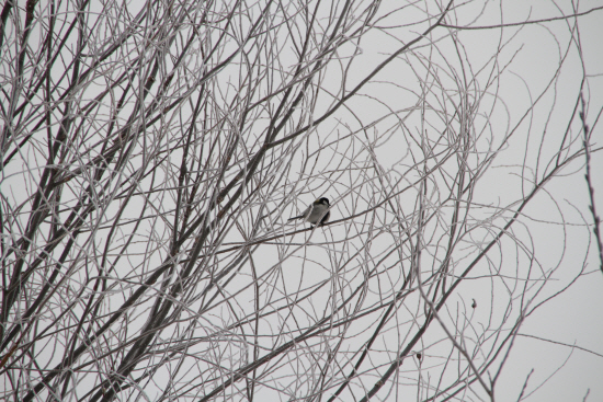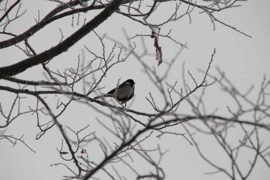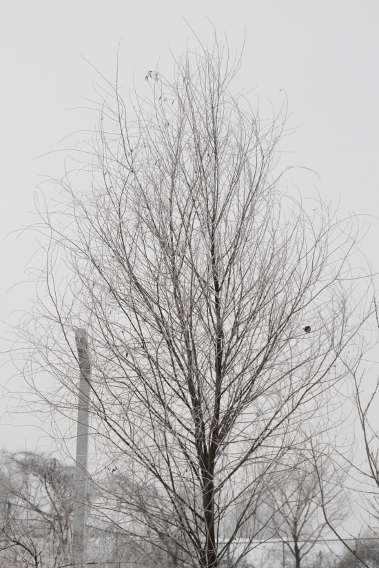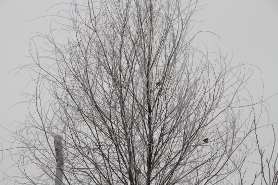 부부가 함께 눈꽃핀 나무위를 오갔습니다.