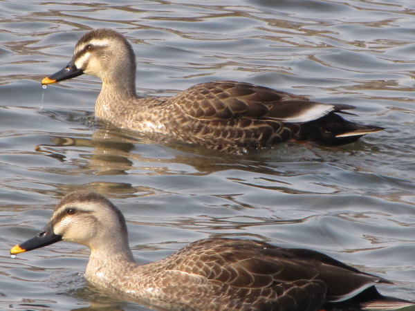 흰뺨검둥오리수컷의 볼이 더 밝고 위아래꼬리덮깃이 더 어두운 흑갈색이라고 하던데요.