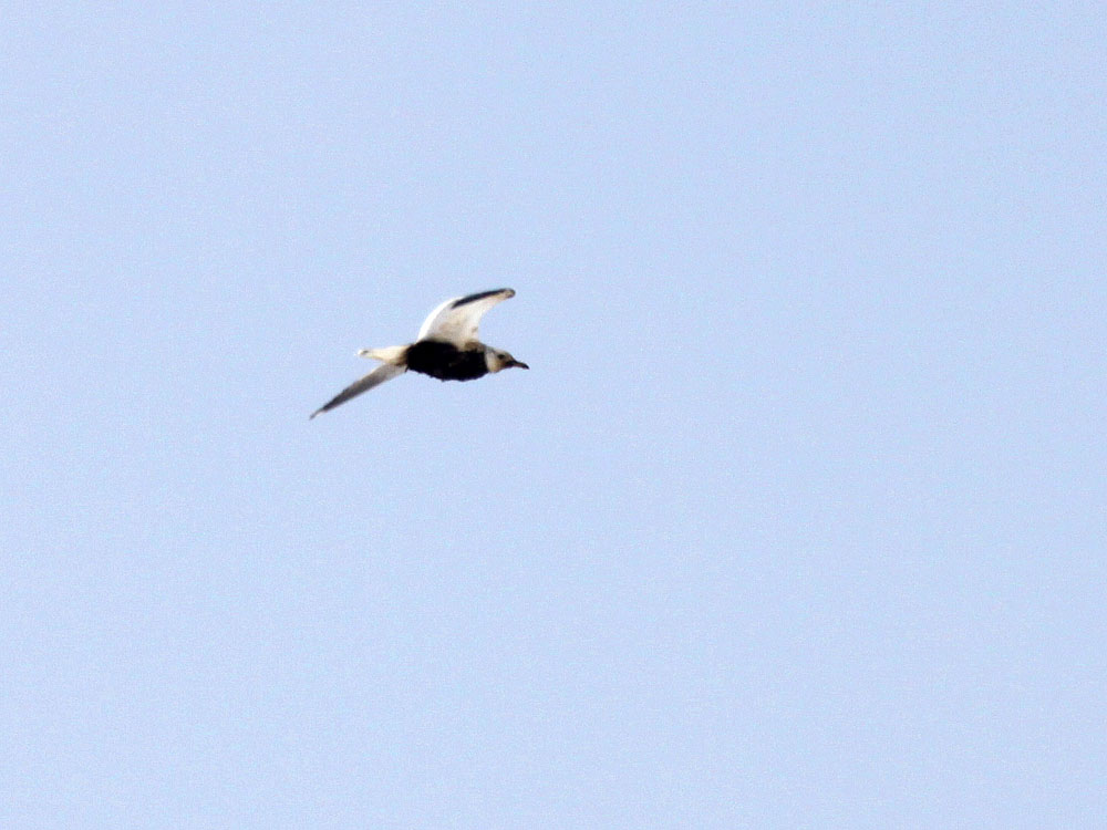 날개끝이 더 진하고 꽁지에 검은 라인이 있고 부리 형태로 보아서 붉은부리갈매기1년생겨울깃으로 보이는데요 가슴에 검은색반점은 오염물질에 의한 변색이 아닌가 생각되여..