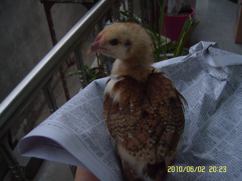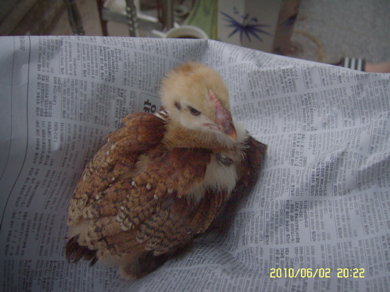 이마에 닭벼슬의 모양이 있는것으로보아 일반 닭의 병아리로 보입니다. 구분하자면 토종닭의 병아리 정도로 보입니다...