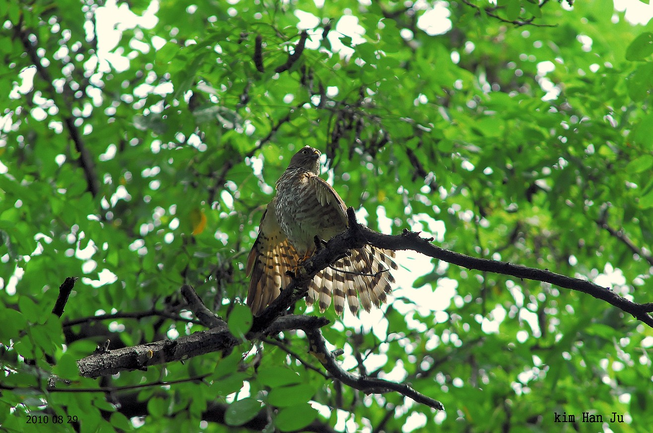 날개 아래 덮깃에 줄무늬가 안보여서 붉은배새매 어린새로 봅니다 ~~!!