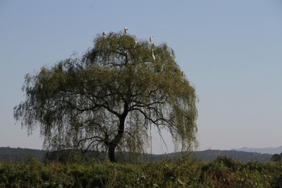 그런데 버드나무 가지에 흰 새들이 앉아