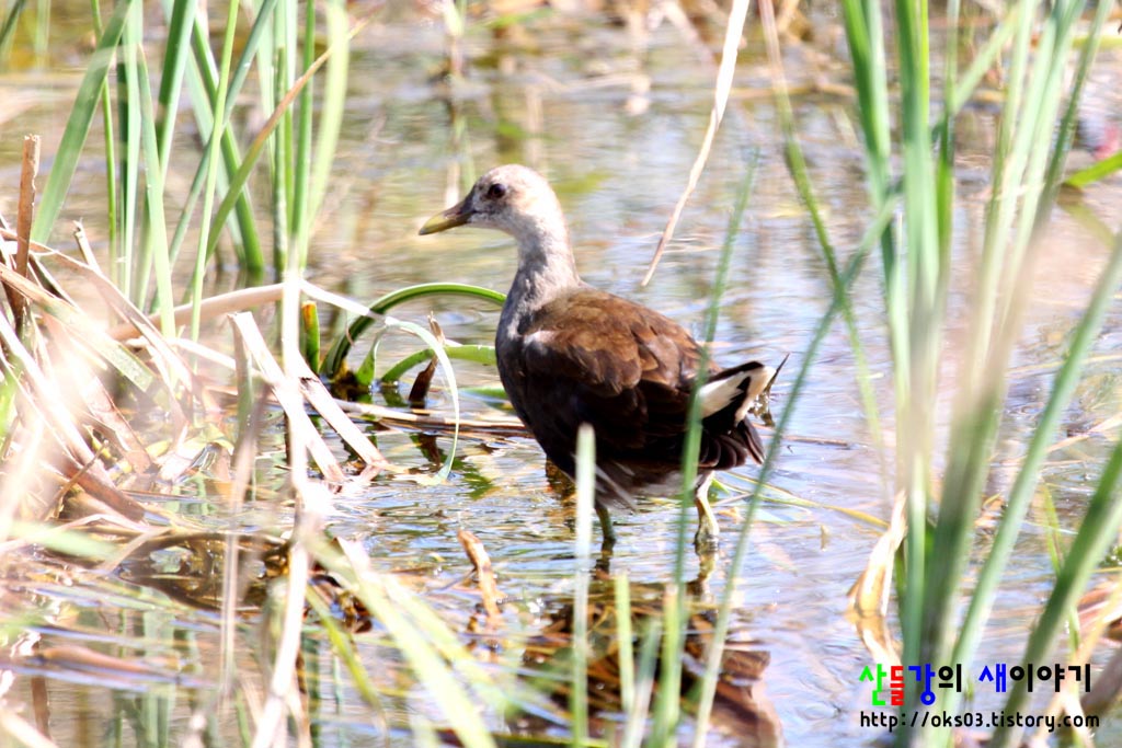 꼬리를 \"탁\", \"탁\" 터는 것이 뜸부기과로 생각은 하고 있었습니다. 그런데... 처음 보는데다 어린새라 너무 헷갈리네요.
