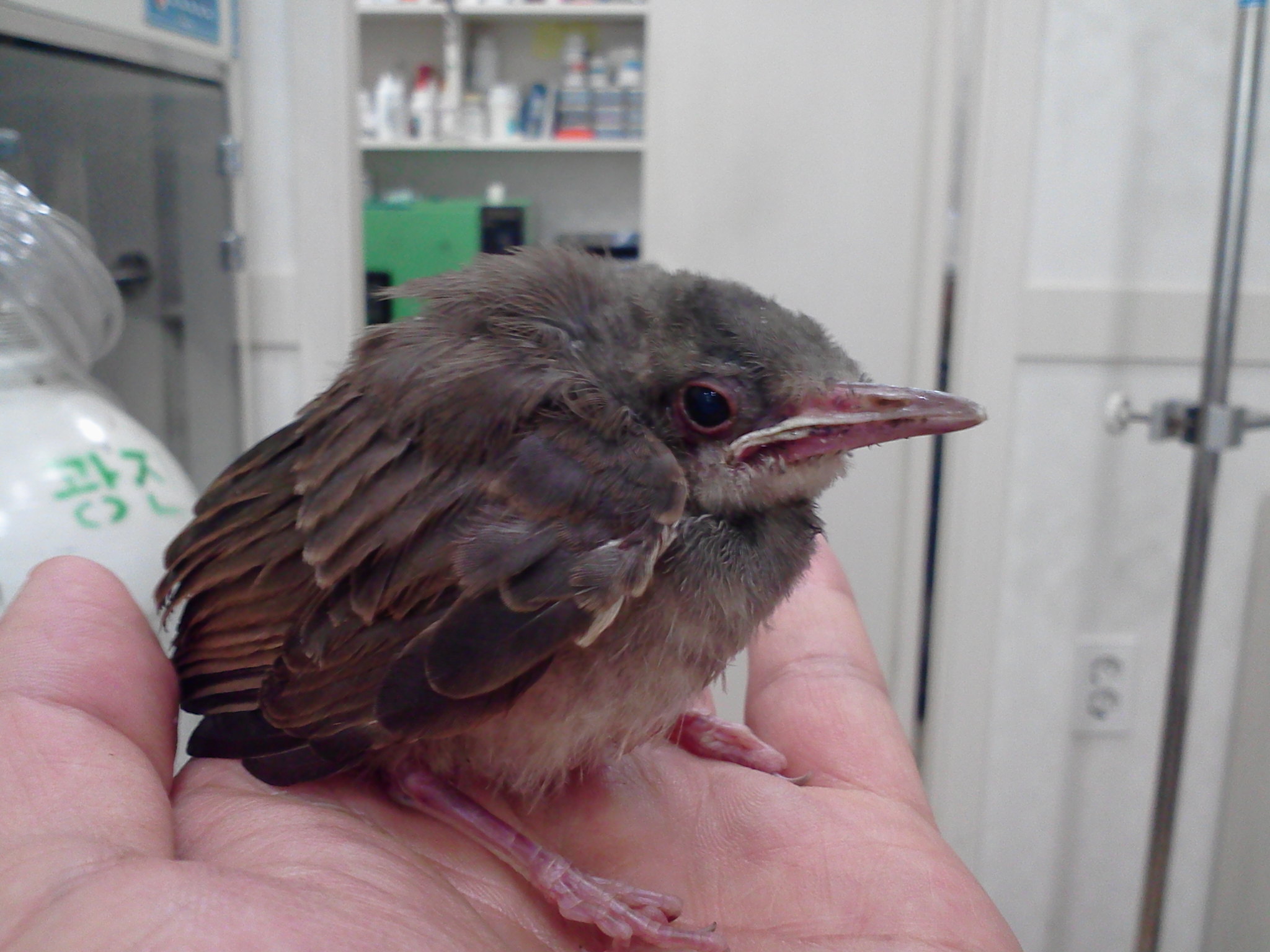 직박구리 유조로 보입니다. 아직 둥지를 떠날때가 않되었는데~ ㅠㅠ 어쩌다~