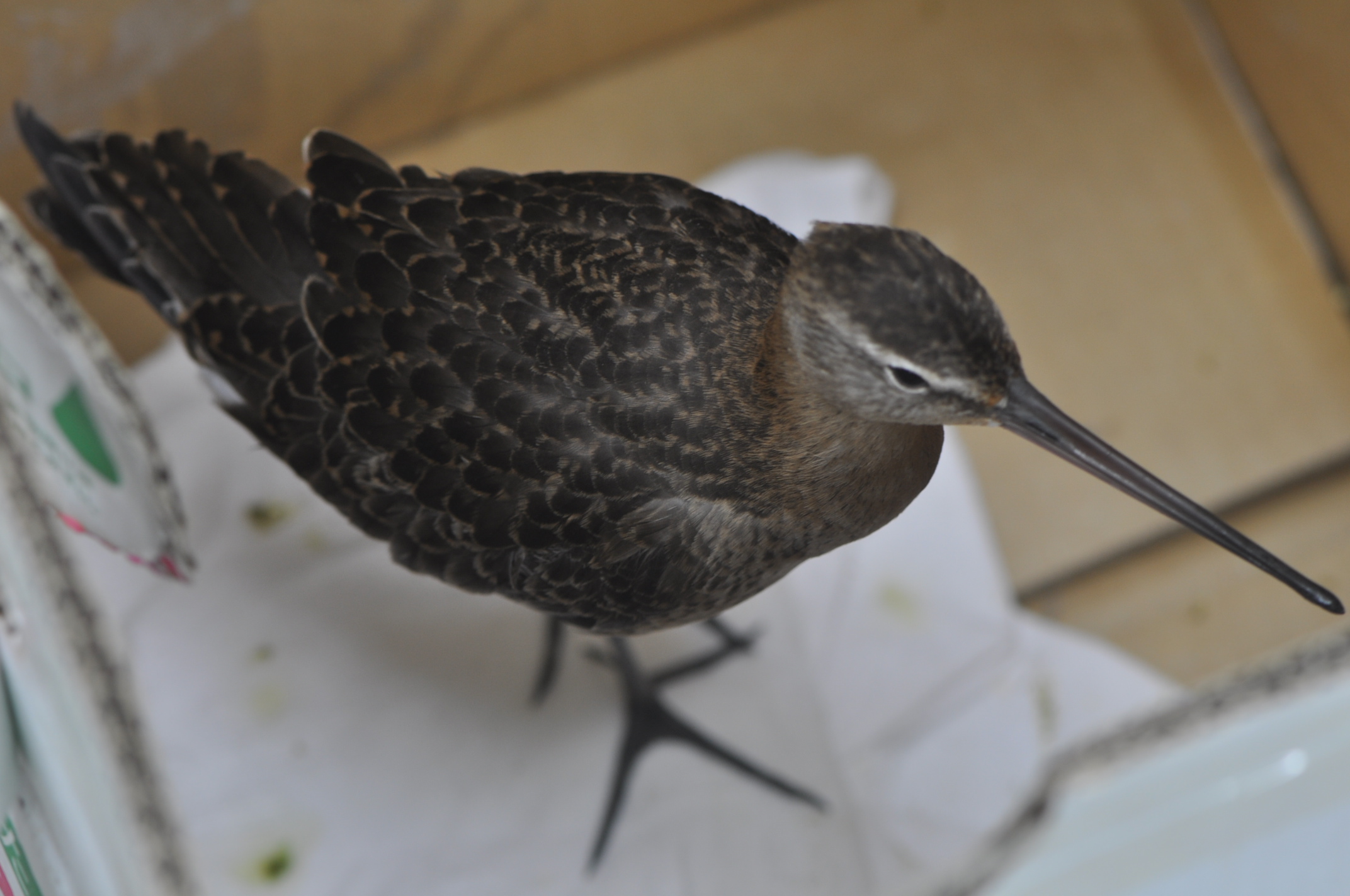 흑꼬리도요 어린새로 생각됩니다. 꽁지에 검은라인이 특징이 되겠어요..잘 회복되기를 바래요