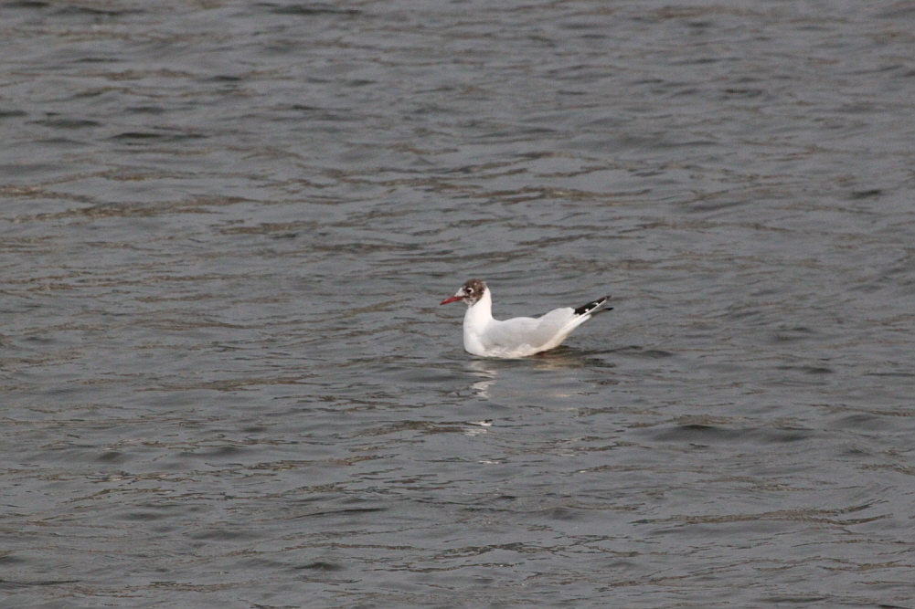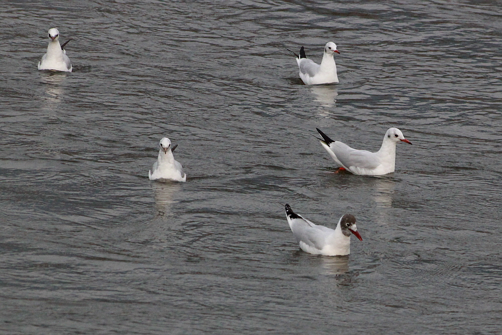 붉은부리갈매기 무리속에 있지만 머리색이 다릅니다.