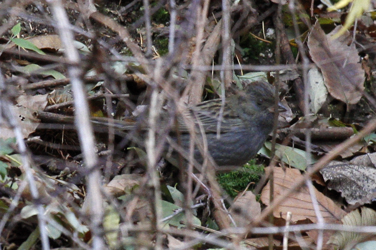 배가 어두운 회색인 녀석 두어마리가 덤불사이를 오가는 걸 보고 기다리다가, 겨우 알아볼까 말까한 사진 한 장 건졌네요.