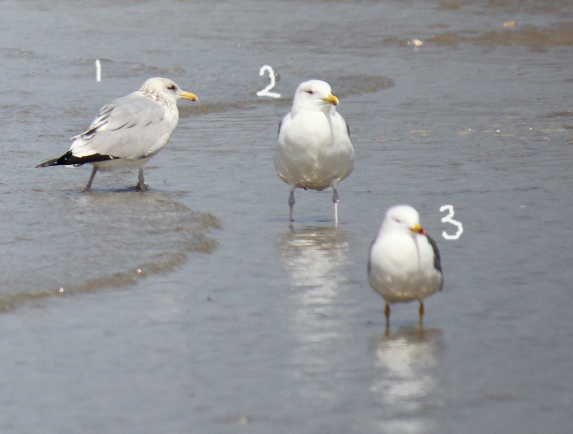 1번은 재갈매기, 3번은 괭이갈매기로 보이는데