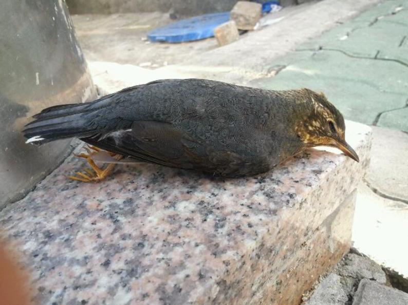 죽어 있는 흰눈썹지빠귀 추정