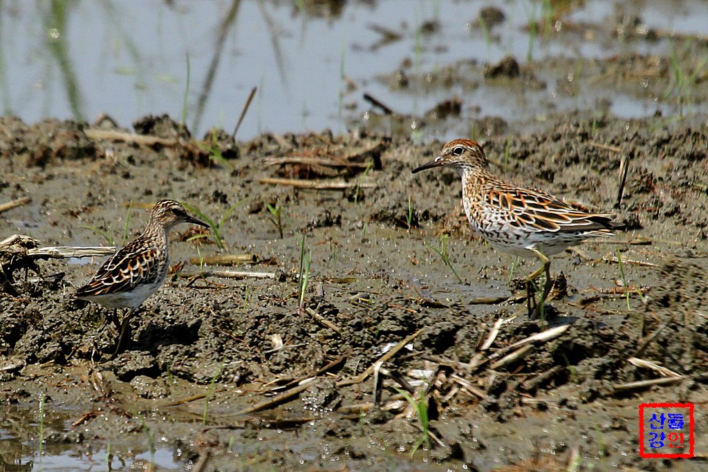 아래쪽에 올린 넘은 오른쪽에 메추라기도요로 추정하고 있습니다.