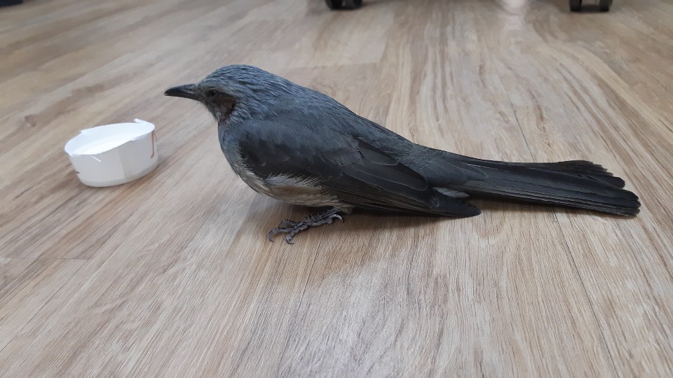 물을 먹이려는데, 부리에서 핏물이 흘러나왔던 것을 보면, 유리창에 부딪쳤었나봐요.
