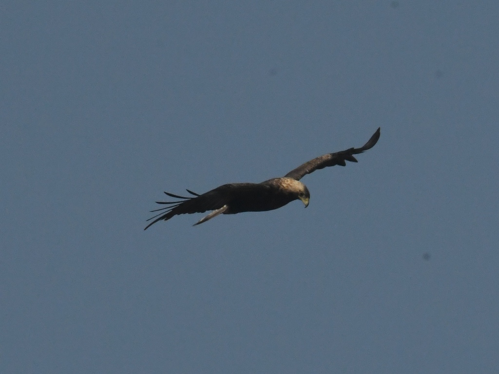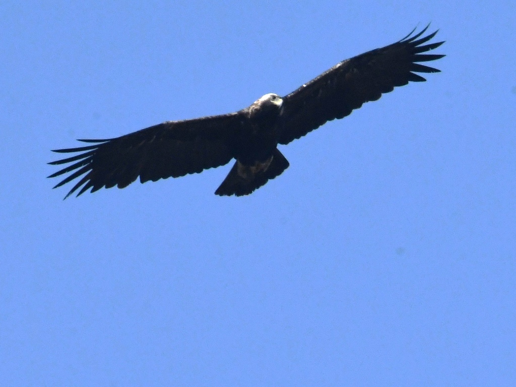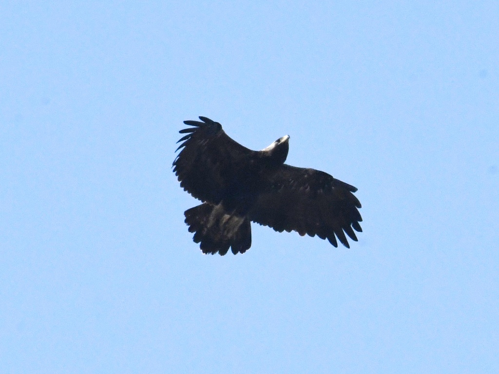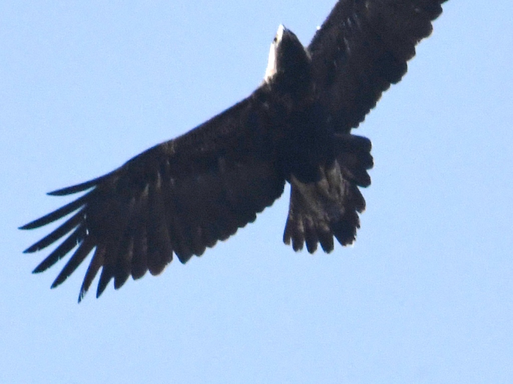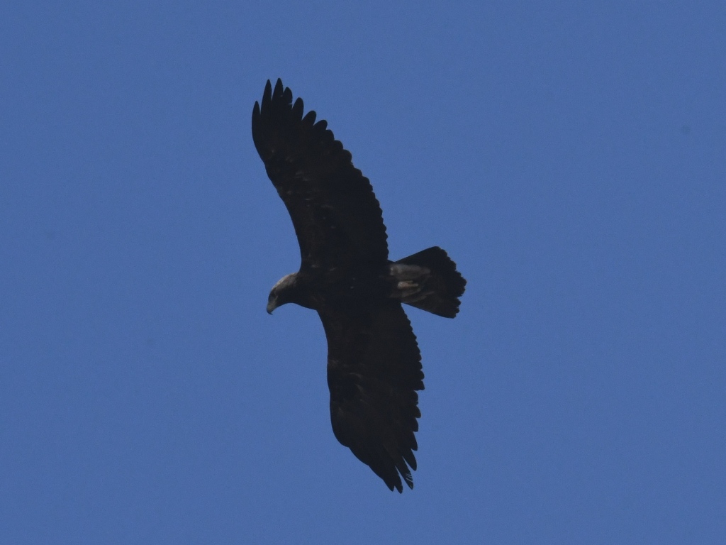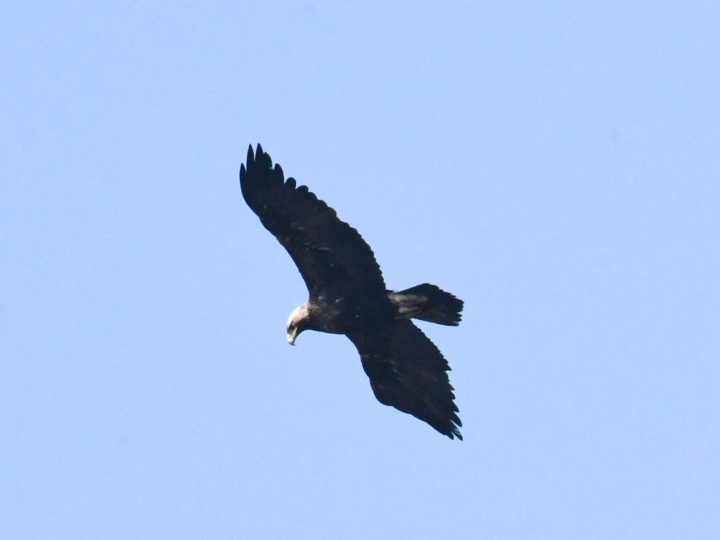 흰죽지수리에 한표. 아래꼬리덮깃의 밝아 보이는 부분이 양 날개와 같은 선상으로 보이는군요, 검독수리는 아래꼬리덮깃의 어두운 부분이 조금 더 내려와 보이더군요. 제 생각엔~