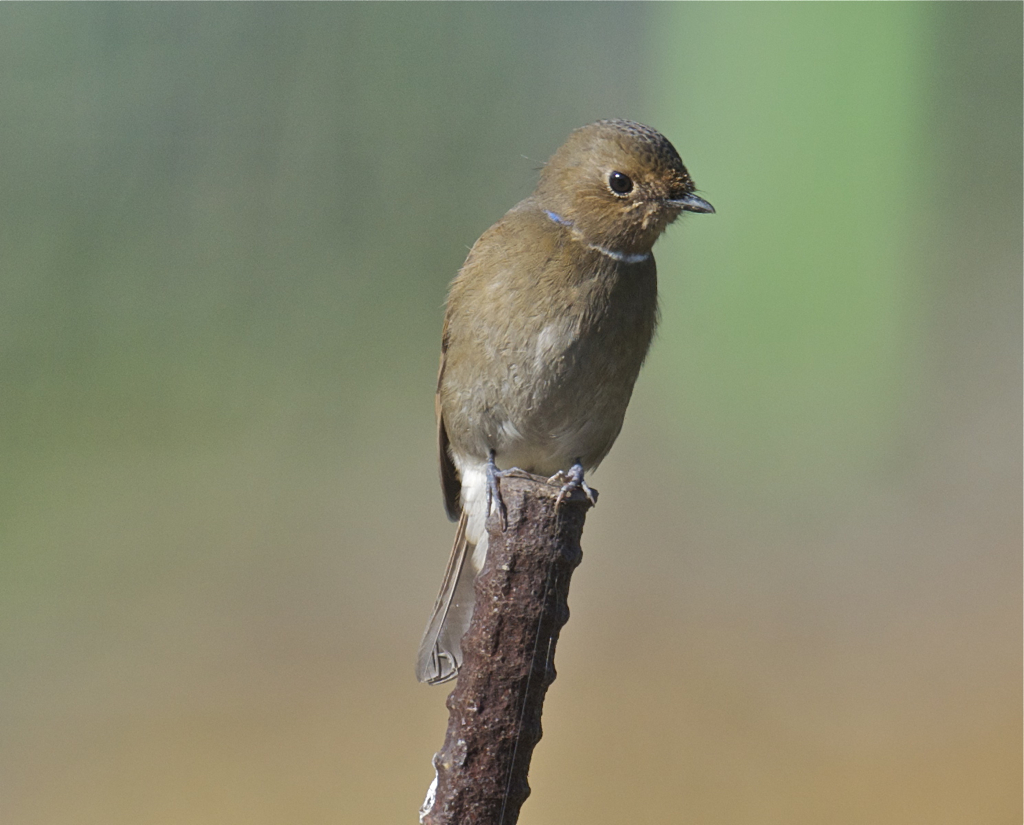 언뜻 검은머리딱새암컷과 유사해 보이지만 더 큰 덩치에 목부분에 하얀깃털이 보이고