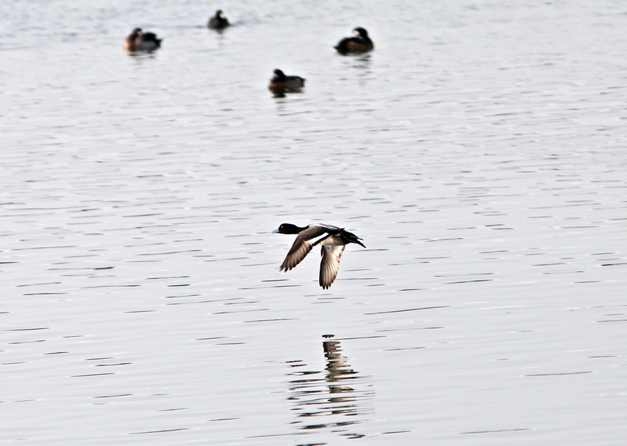 검은머리흰죽지는 거의 균일한 흰색인데 반해, Lesser Scaup 는 첫째 날개깃의 흰색부분은 더 어둡고 둘째 날개깃의 흰색부분이 휠씬 밝습니다.