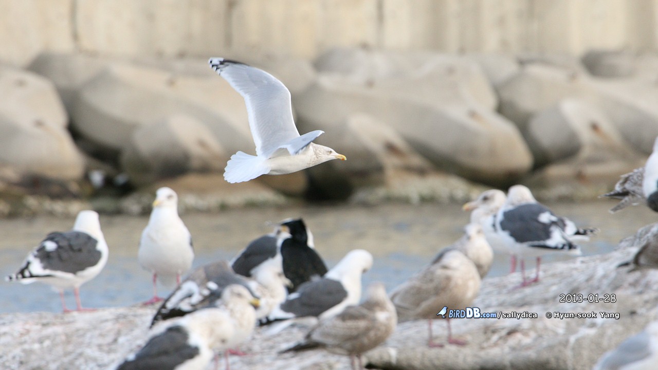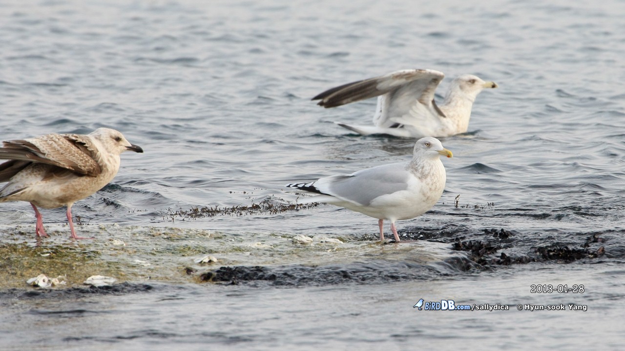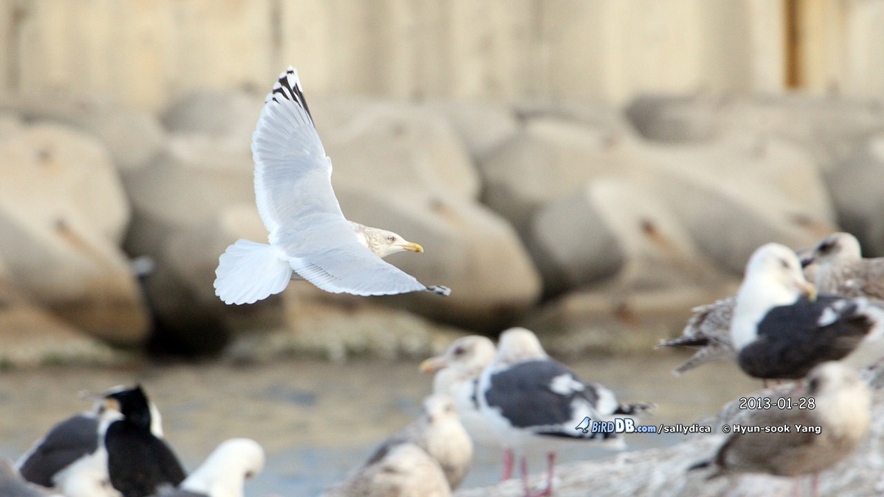 이전에 올린 사진에서 볼때 옅은재갈매기 eastern type의 가능성을 보고 댓글을 남겼었는데, 크기를 보니 작은재갈매기의 가능성도 높아 보입니다. 하지만 일반적인 작은재갈매기의 첫째날개깃의 검은 무늬는 p6에서 p10까지 있는데, 이 개체는 p7부터 검은무늬가 보이며, 이는 작은흰갈매기 kumlieni 아종의 특징일 수도 있답니다.