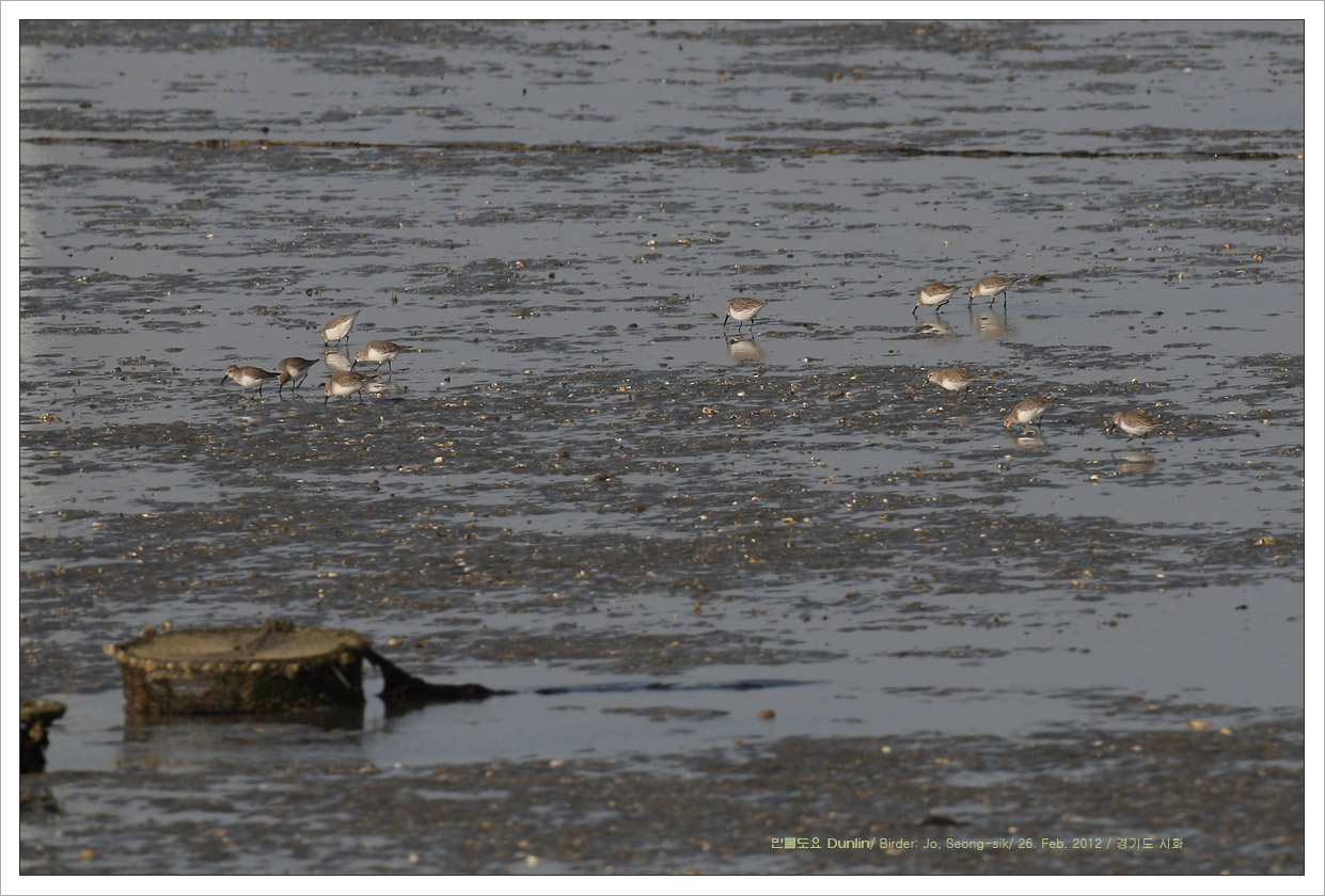 썰물로 드러난 뻘과 물의 경계에서 무리지어 먹이활동을 합니다.