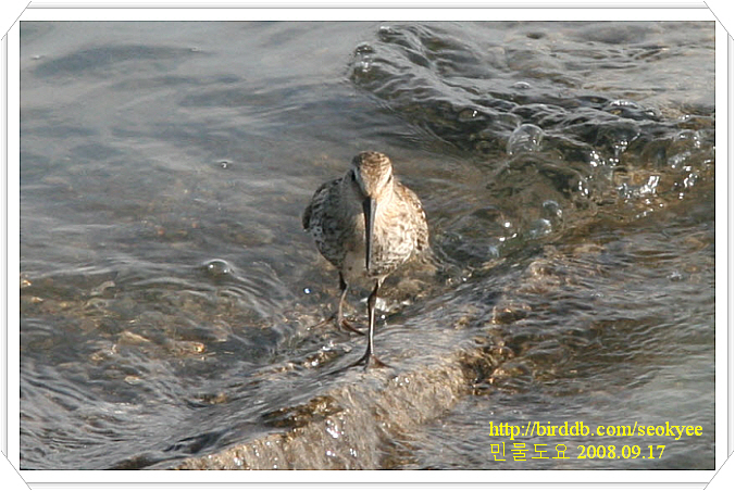 수십마리의 흑꼬리도요와 청다리도요 사이에 민물도요 1개체가 섞여있습니다.