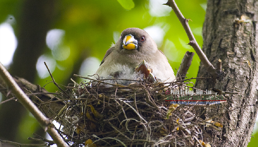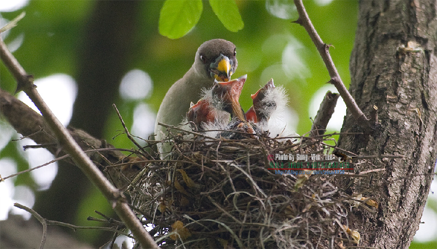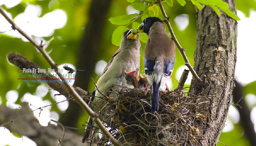 밀화부리 둥지와 육추모습.