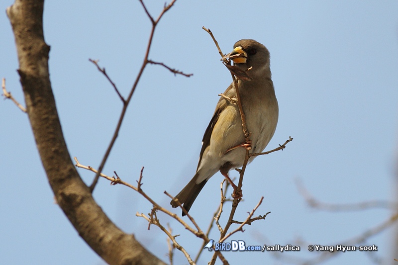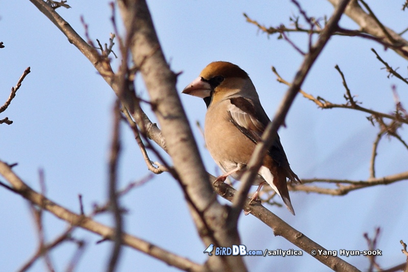 열매가 별로 남지 않은 상황에 밀화부리들이 나타나서 마구 먹어대는 중인가봅니다.