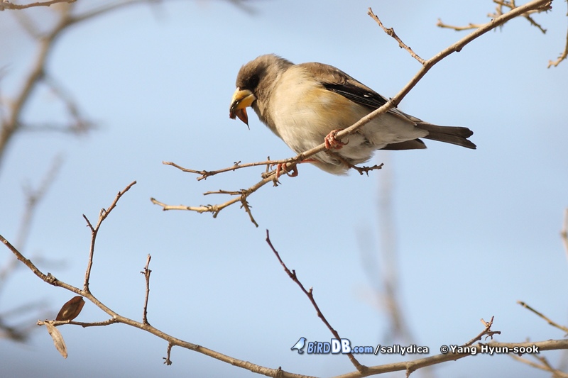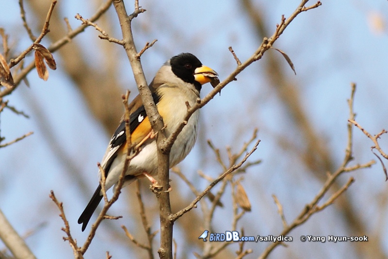 밀화부리 3마리가 두충열매를 아주 맛있게 먹고 있습니다. ^^