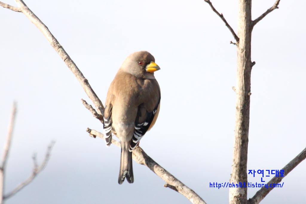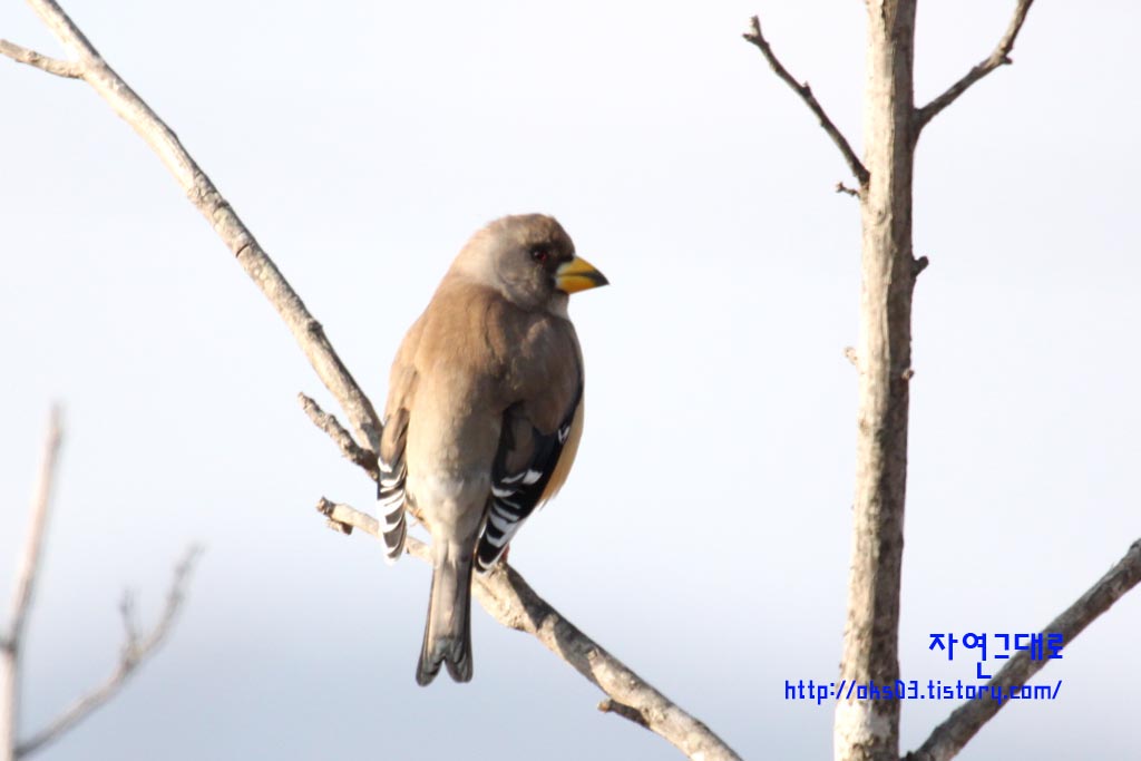 구미시 해평에서 촬영한 밀화부리 수컷과 암컷입니다.