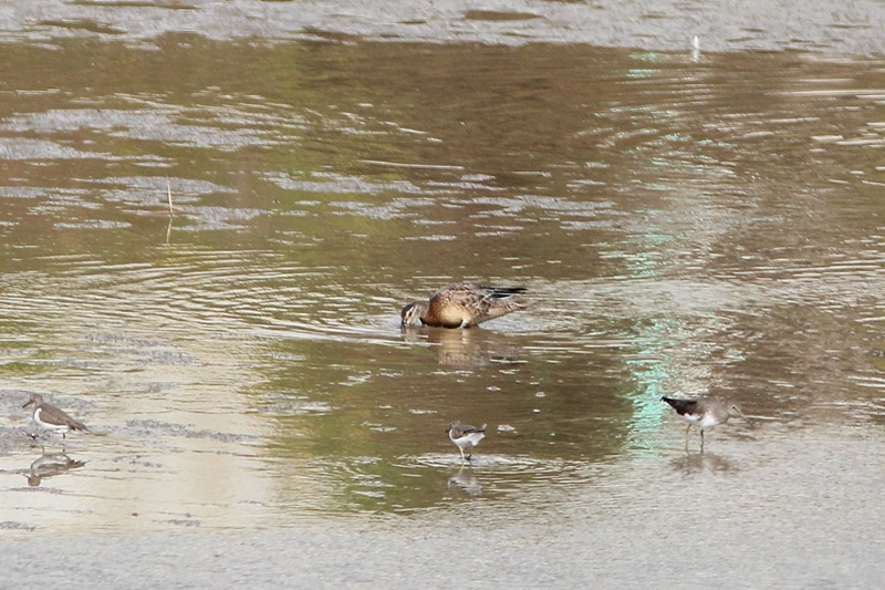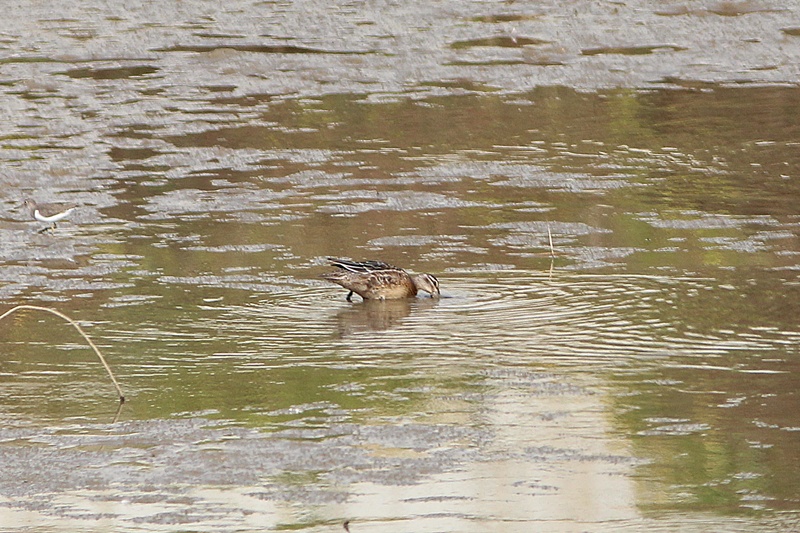 흰뺨검둥이들과 같이 있는데 크기차이가 나서 쇠오리 인가 하고 봤는데,