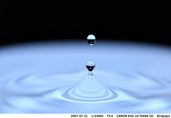 물방울을 찍을 때 기법상의 어려운 점은 물방울이 떨어지는 순간의 포착일 것입니다.