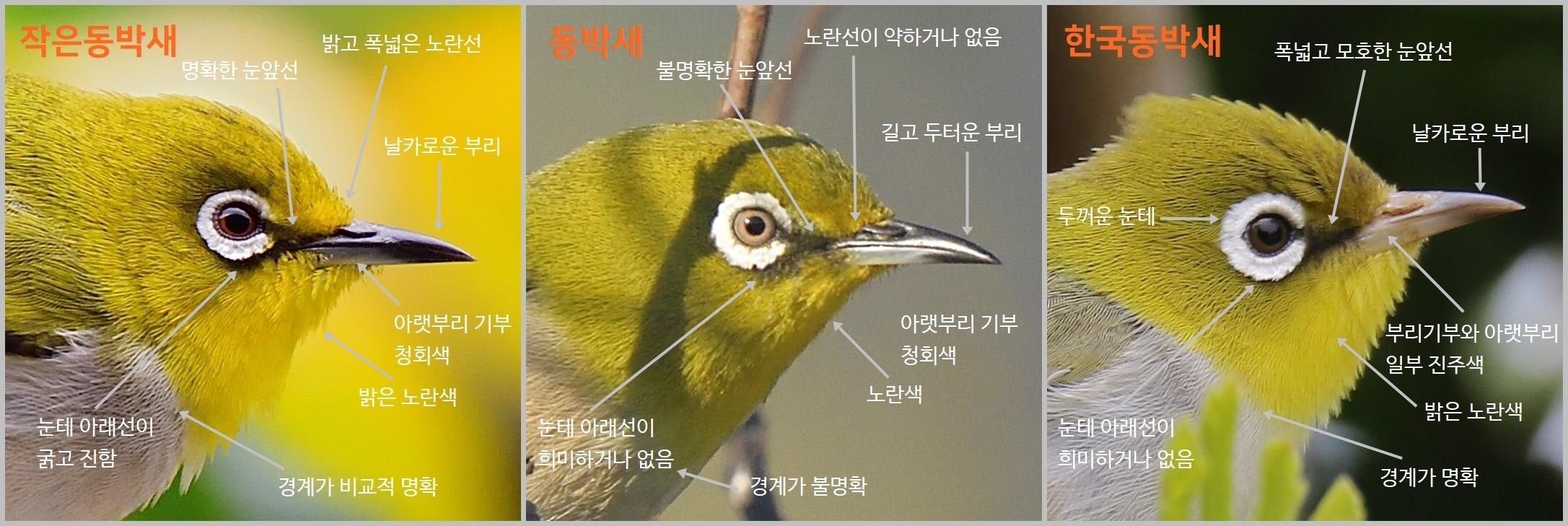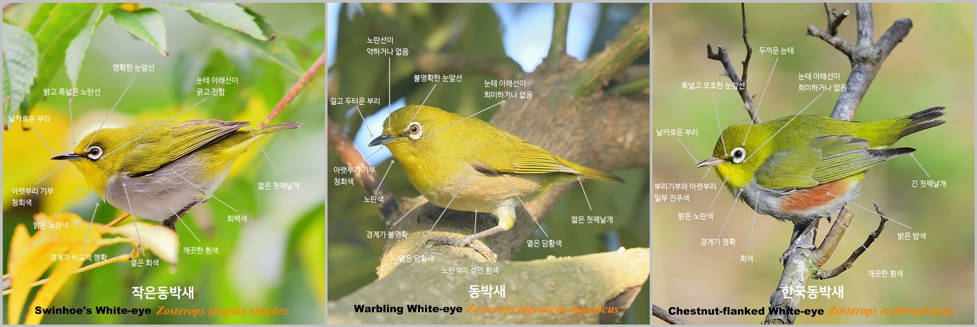 동박새류[White-eye] 동정하기: 동박새, 작은동박새, 한국동박새