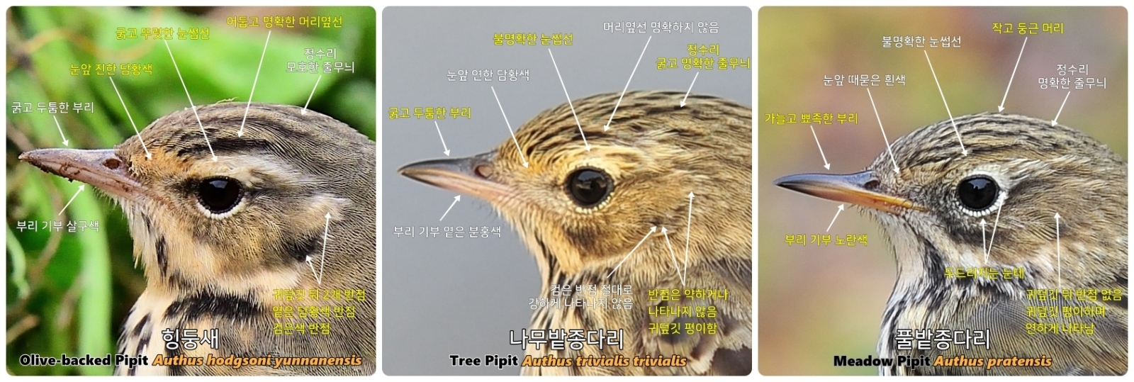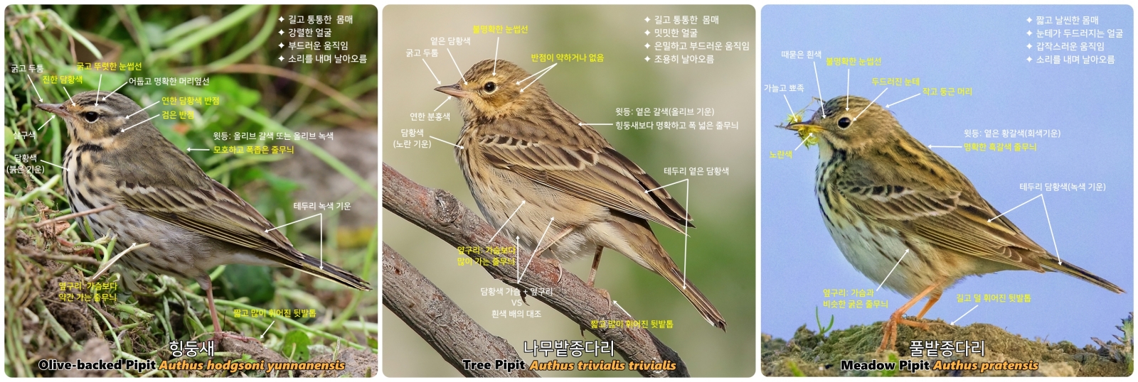 동정에 혼란이 있는 힝둥새, 나무밭종다리, 풀밭종다리의 동정 특성과 행동 특성들을 정리해 봤습니다. ^^