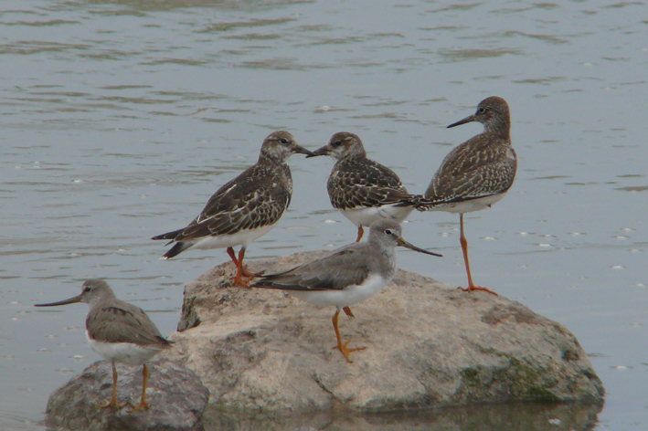 뒷부리도요 꼬까도요 붉은발도요가 같이 있습니다.