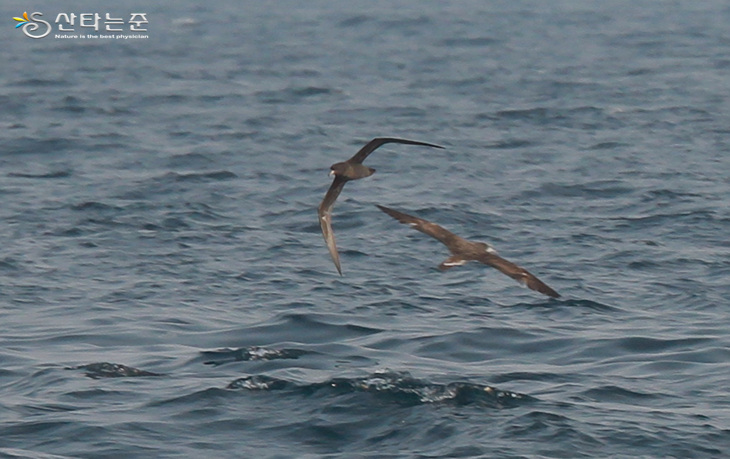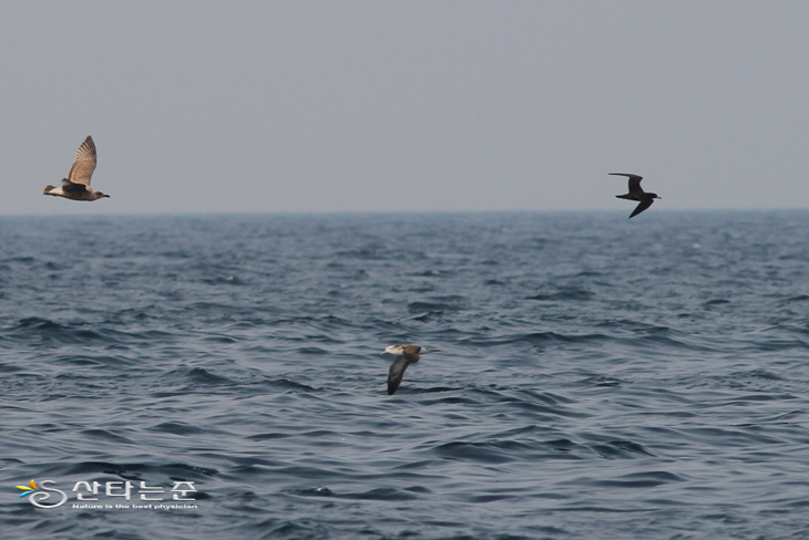 반면에 쇠부리슴새는 수면위를 아주 빠르게 이동하며 이동시에는 크게 방향 전환없이 날아가는 것이 특징입니다. 먼곳에서 비행패턴만 보더라도 개체를 감별할 수 있을 듯 합니다.