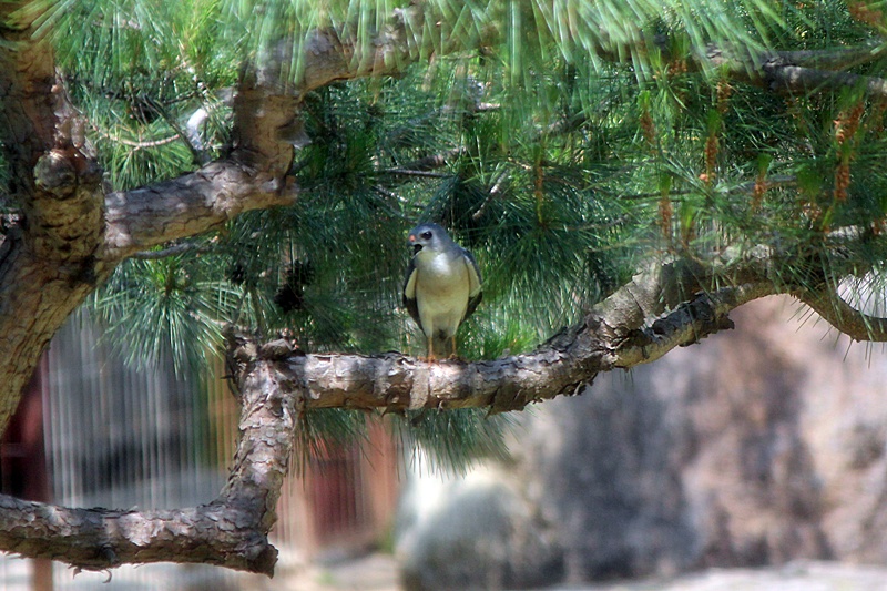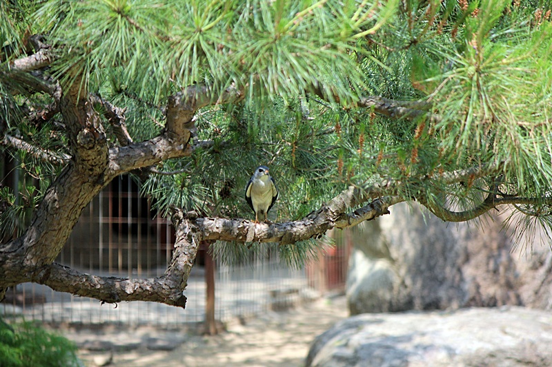 양평 펜션 마당 소나무에 내려앉은 붉은배새매....